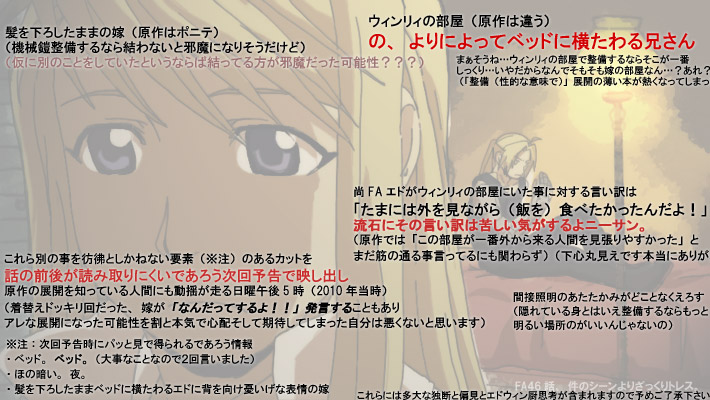 あとFAはウィンリィのふとももをくぐるようなアングルがあって非常に素晴らしいです作画もめっちゃ好きです多分あの回のウィンリィさんFAで一番かわいいんじゃなかろうかと思っているくらい